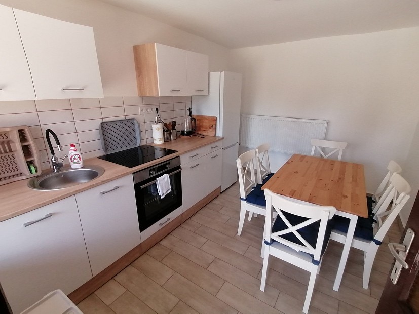 The guesthouse has a well-equipped kitchen suitable for preparing simple meals.